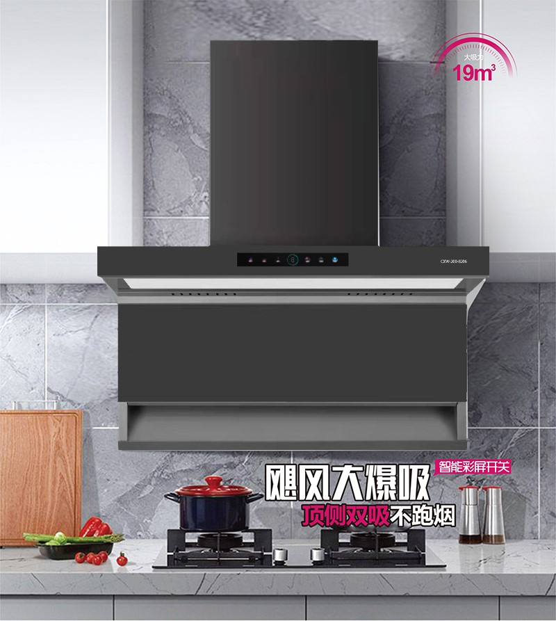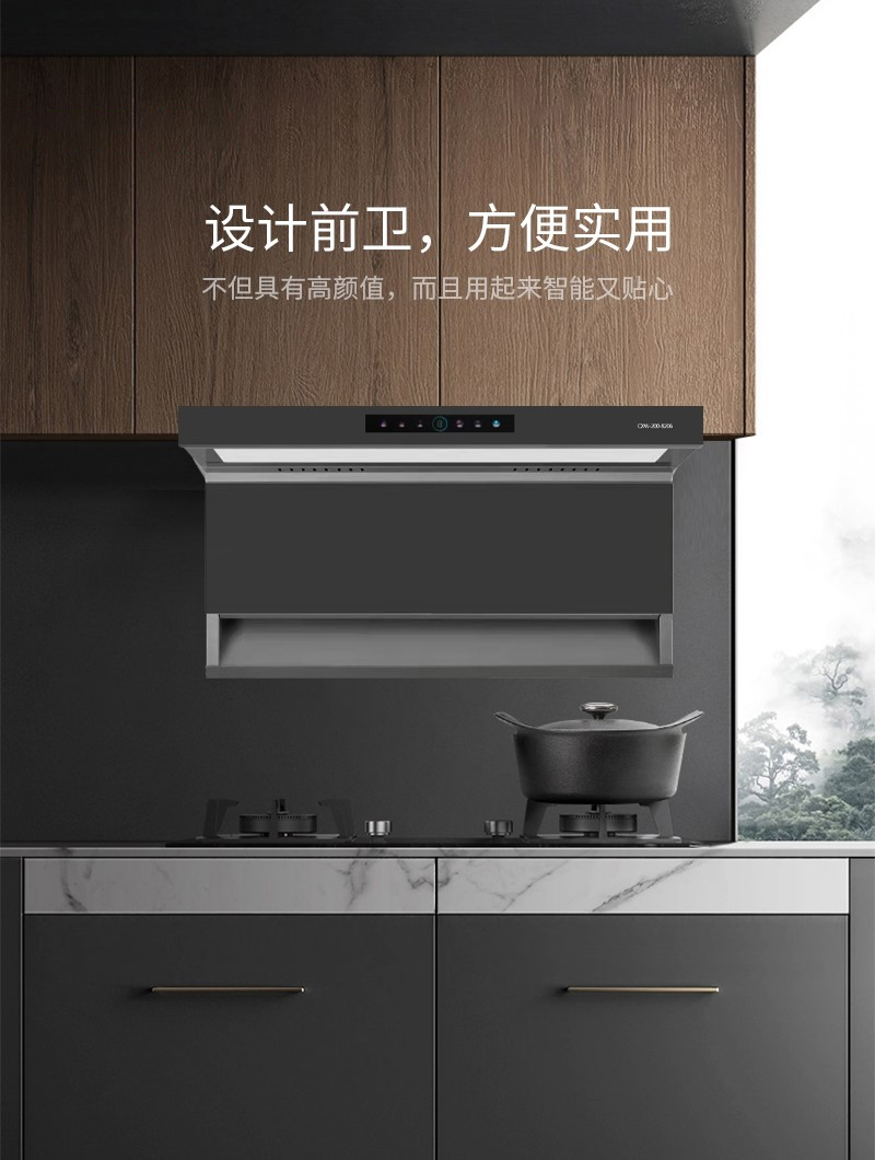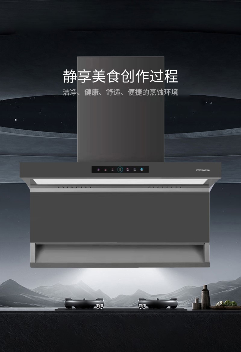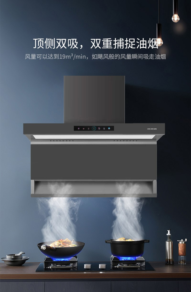 CXW-200-8206吸油煙機創新設計,頂側雙吸,雙重捕捉油煙,讓油煙無處逃竄,快速吸凈。