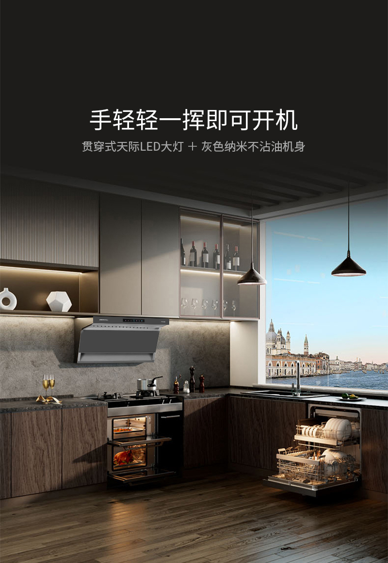炒菜時大家都有這樣的困擾,炒著炒著菜等著油煙升起來了,才發現油煙機忘記開了,顧不得擦一下油膩的雙手就去開油煙機,不但不方便,而且還會把油漬沾到油煙機上,很不干凈。針對這一痛點,天使好太太特意設計了圖騰彩屏體感開關,不用觸碰用手輕輕一揮即可開機,便捷好看還潔凈,很是貼心。