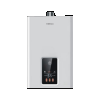 高效無氧銅水箱,抗菌、節能;火焰雙分段燃燒器;低水壓啟動,啟動流壓只需0.01Mpa;速燃點火技術,比普通恒溫機快73%;雙斜邊立體盾形設計線條見鋒芒,時尚冰川白烤面板;LED觸摸屏